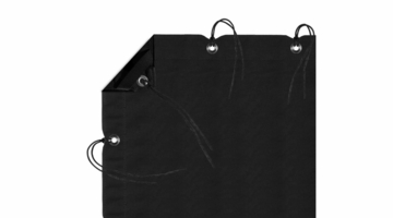 Constructed of commando cloth also known as heavy duty duvetyne or duvateen, a matte black fabric. 8ft. x 8ft. Totally blocks light. Flame retardent. Material has heavy duty nylon webbing along perimeter with grommets and string ties for attaching to frame.