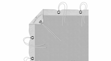 Size: 8ft. x 8ft. Light diffusion of direct light. Introduces a significant amount of ambient bounce. Fabric has elastics in corners and grommets along perimeter for attaching to frame with string ties. Silent in the wind when used outdoors. Light Loss: -1.0 f-stop