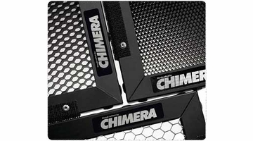 CHIMERA Honeycomb Grids give imagemakers remarkably high-quality light control. These grids, designed by photographer/ inventor Dave Christensen, are constructed of black expanded aluminum honeycomb. Grid designations are 30° , 60° , and 90° . Beam angles at 50% intensity are 25, 35, and 45 degrees. The Honeycomb Grid 60° is the most commonly used. Because of the hard grid's small hexagonal cell size and thin depth, the light cutoff is precise and the edge transfer is smooth and rapid. CHIMERA Honeycomb Grids are available for CHIMERA Lightbank sizes extra small through medium and are packaged in reusable plywood crates.